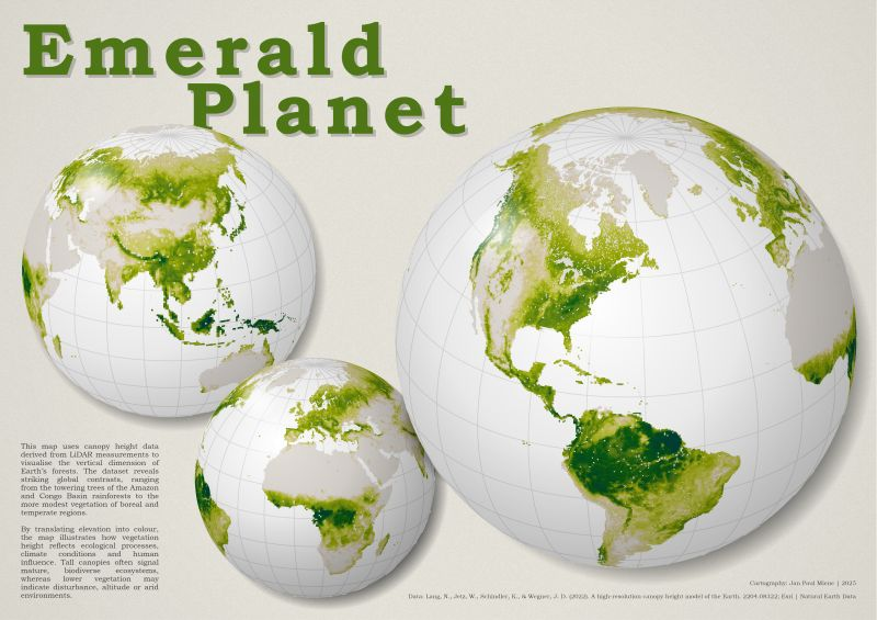 My favorite - a beautiful "Emerald Planet" visualisation showing forest heights worldwide, from Amazon giants to northern woodlands.