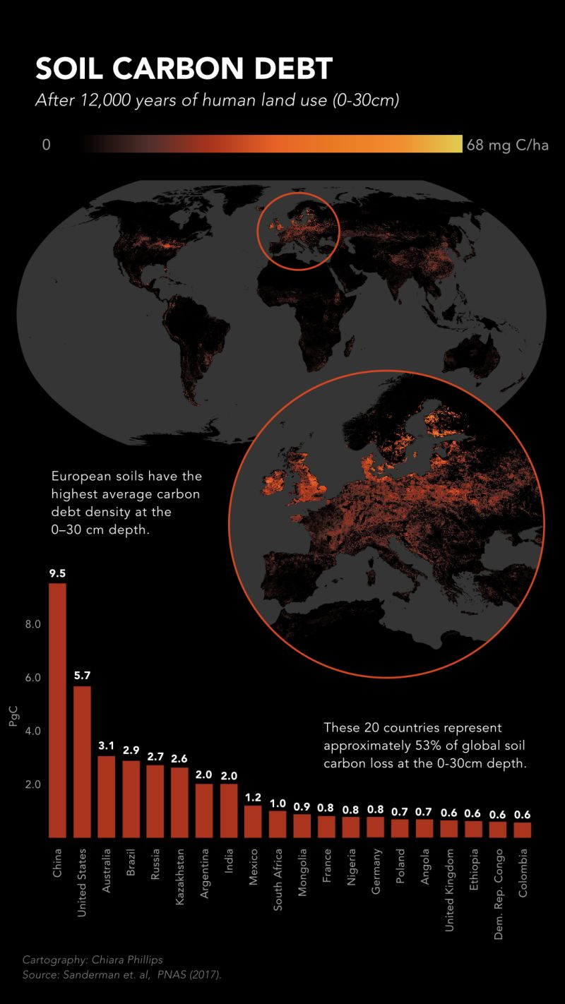 A powerful map showing how 12,000 years of human land use has depleted soil carbon across continents.